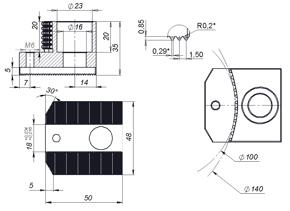 Токарные калёные кулачки 12″_60x140 с зубчатой метрической рейкой. Шаг зуба рейки 1.5×60°.
