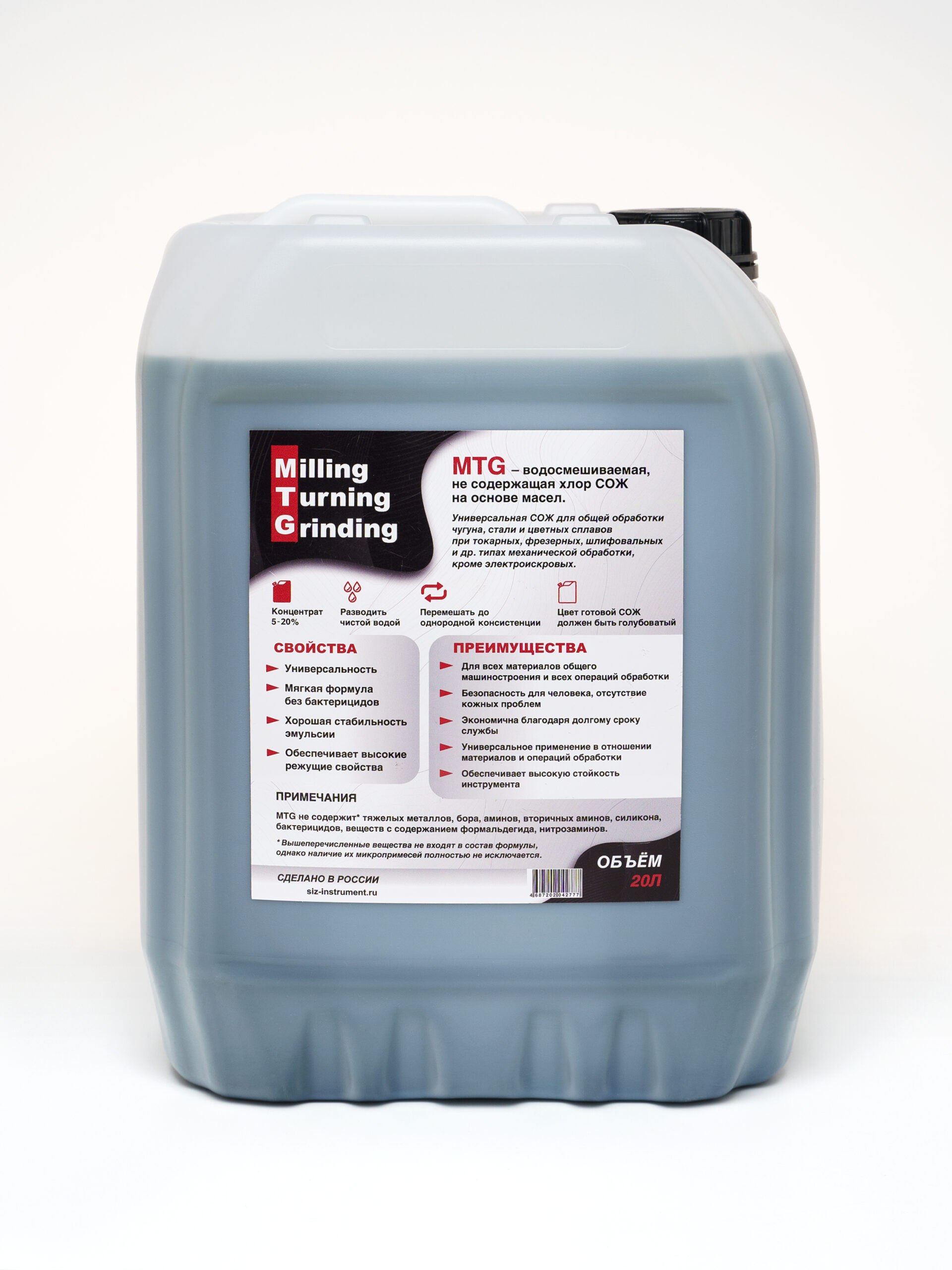Смазочно-охлаждающая жидкость MTG для любых лезвийных операций даже высоколегированными сталями. СОЖ выполняет высокие требования, как по чистоте обрабатываемых поверхностей, так и по стойкости инструмента.